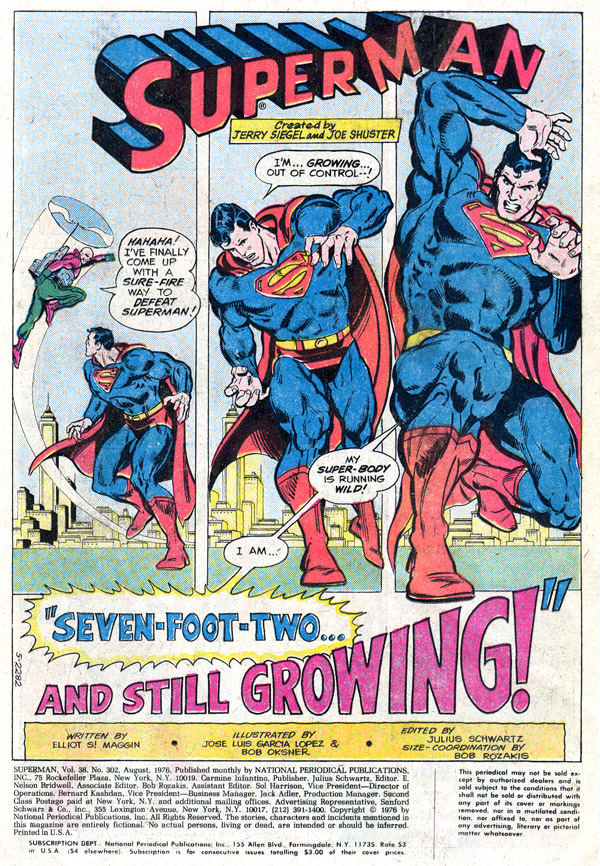 From Superman 302 ( cover dated August 1976), the first issue with Jerry and Joe’s creator credit restored to the comic book